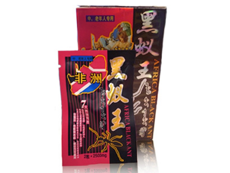 アフリカ産の大型の蟻には蛋白質、数種のアミノ酸、ビタミン、酵素物質、亜鉛、マグネシウム、マンガン、セレン、鉄など微量元素、トリノシン、ステリットが豊富に含まれており、これらの総合的栄養物質は有機塩の形で存在しているので、人体に吸収しやすく、副作用がありません。蟻の体内から丁寧に抽出された希少なエキスを主原料としている極強勃起薬です。